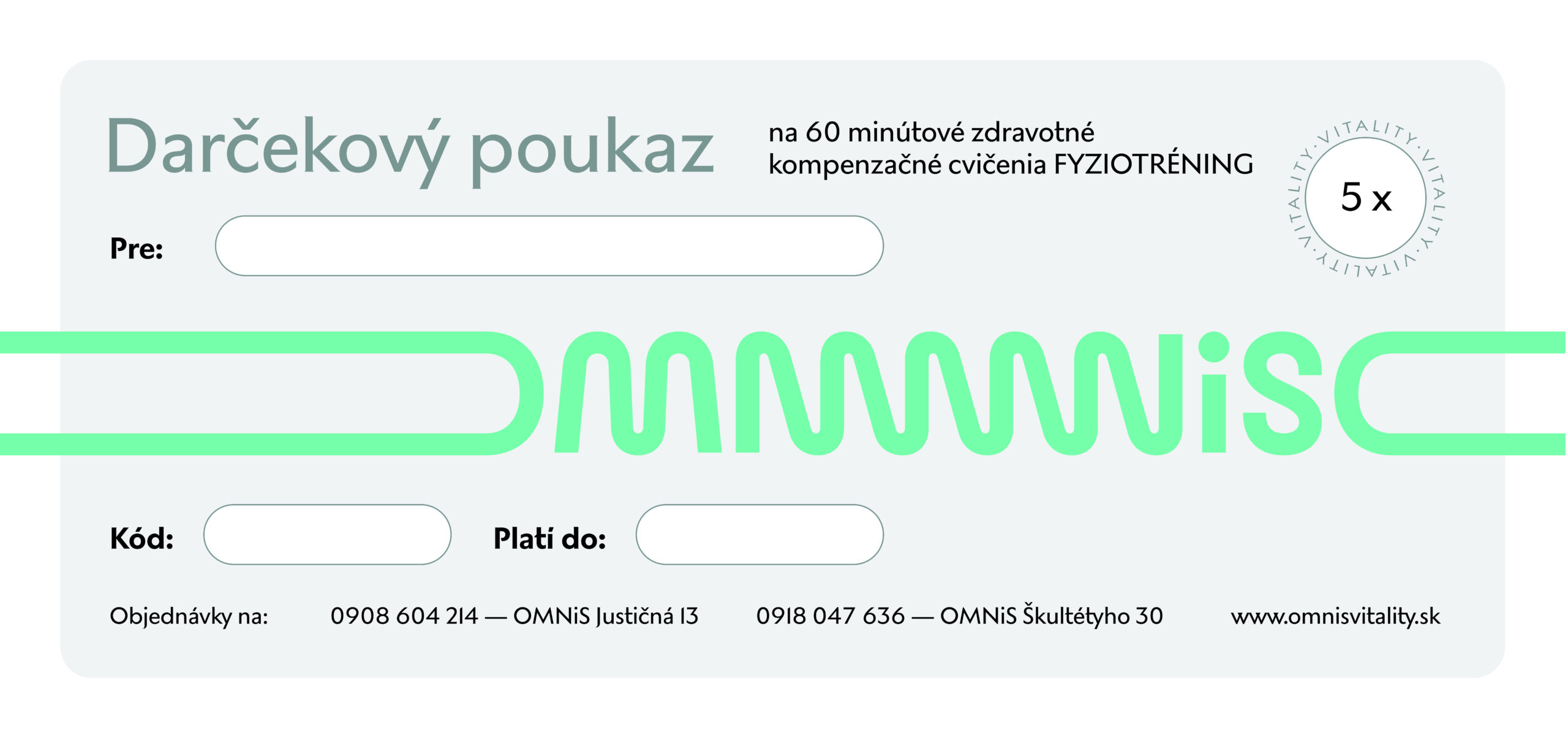 Poukaz je prenosný a platí 6 mesiacov od zakúpenia. Termín cvičenia si obdarovaný dohodne individuálne podľa vlastných potrieb.