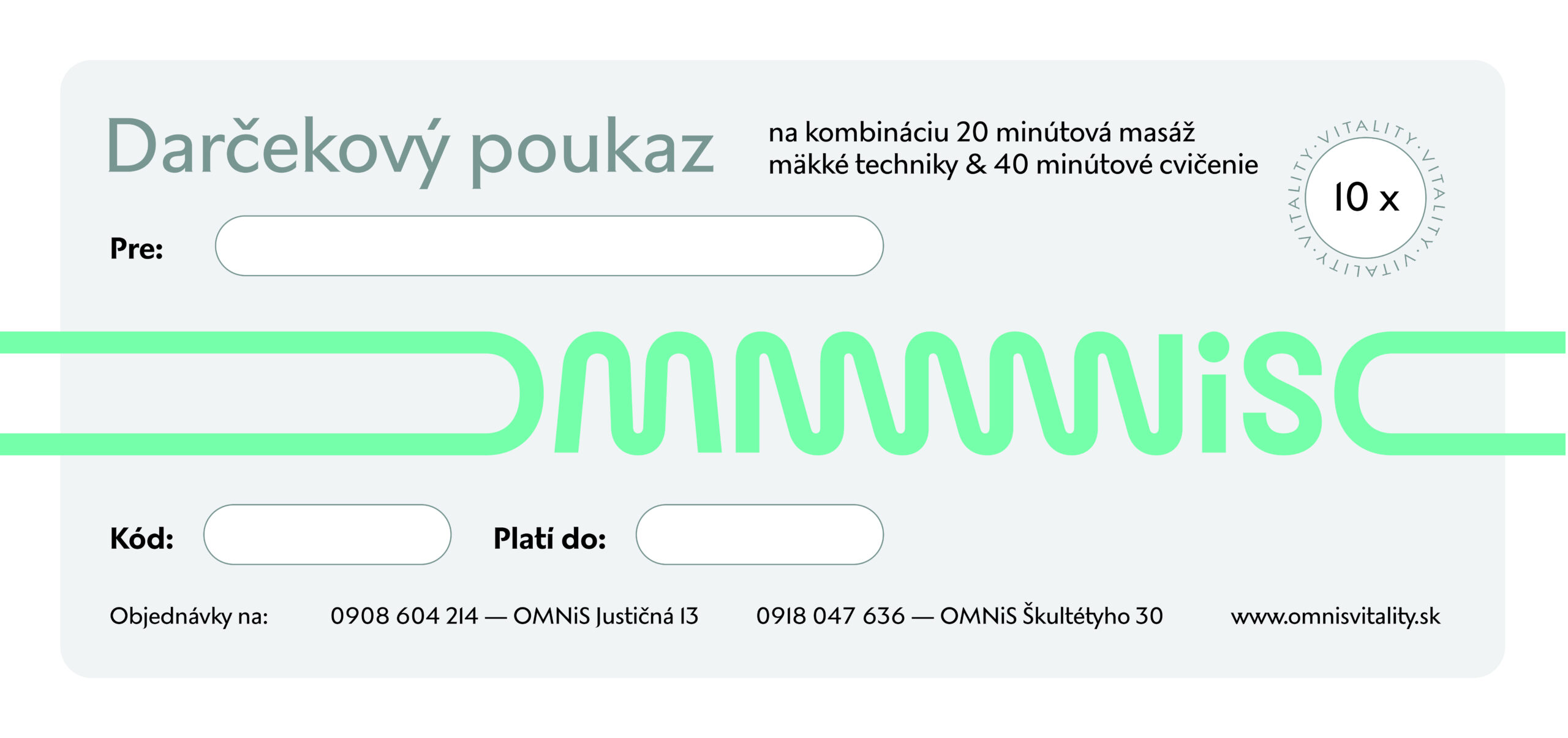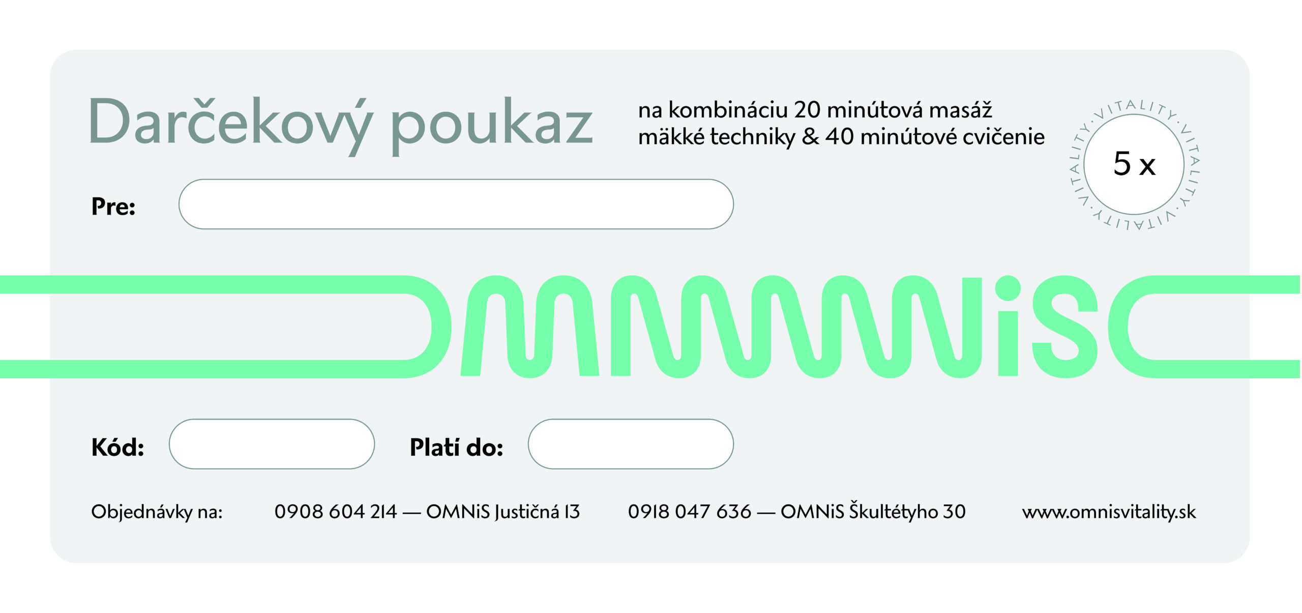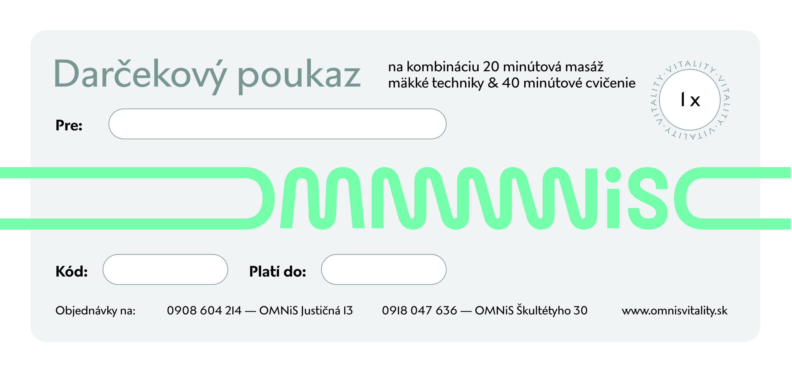Omnis — E-shop — Darčekový poukaz na kombináciu 20 minútová masáž mäkké techniky & 40 minútové cvičenie